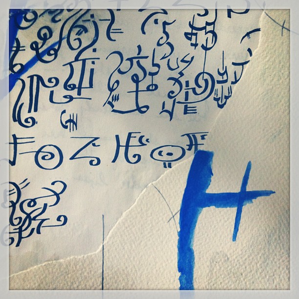 Journal page from 15 years ago or so. Ink w/ brush and taped saxophone torn from elsewhere.